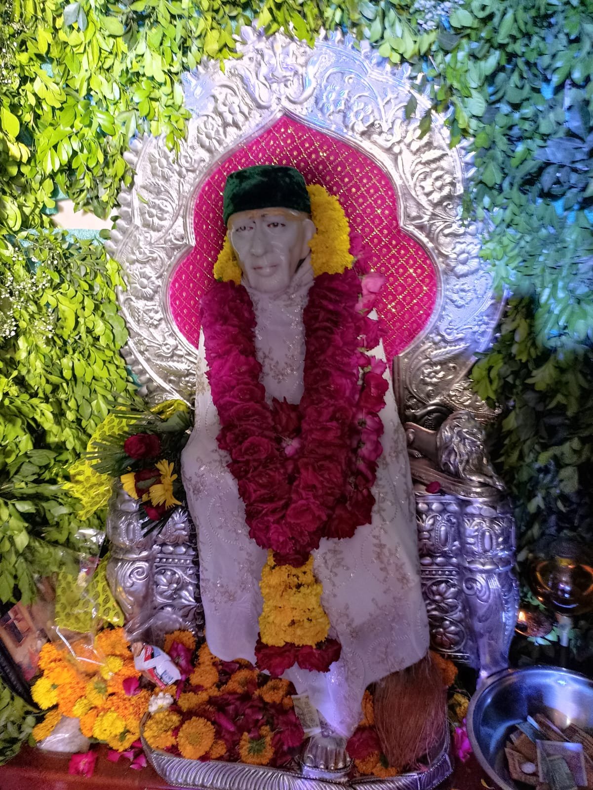 • A bronze statue of Sai is placed near the main marble statue, adding to the temple’s spiritual ambiance.